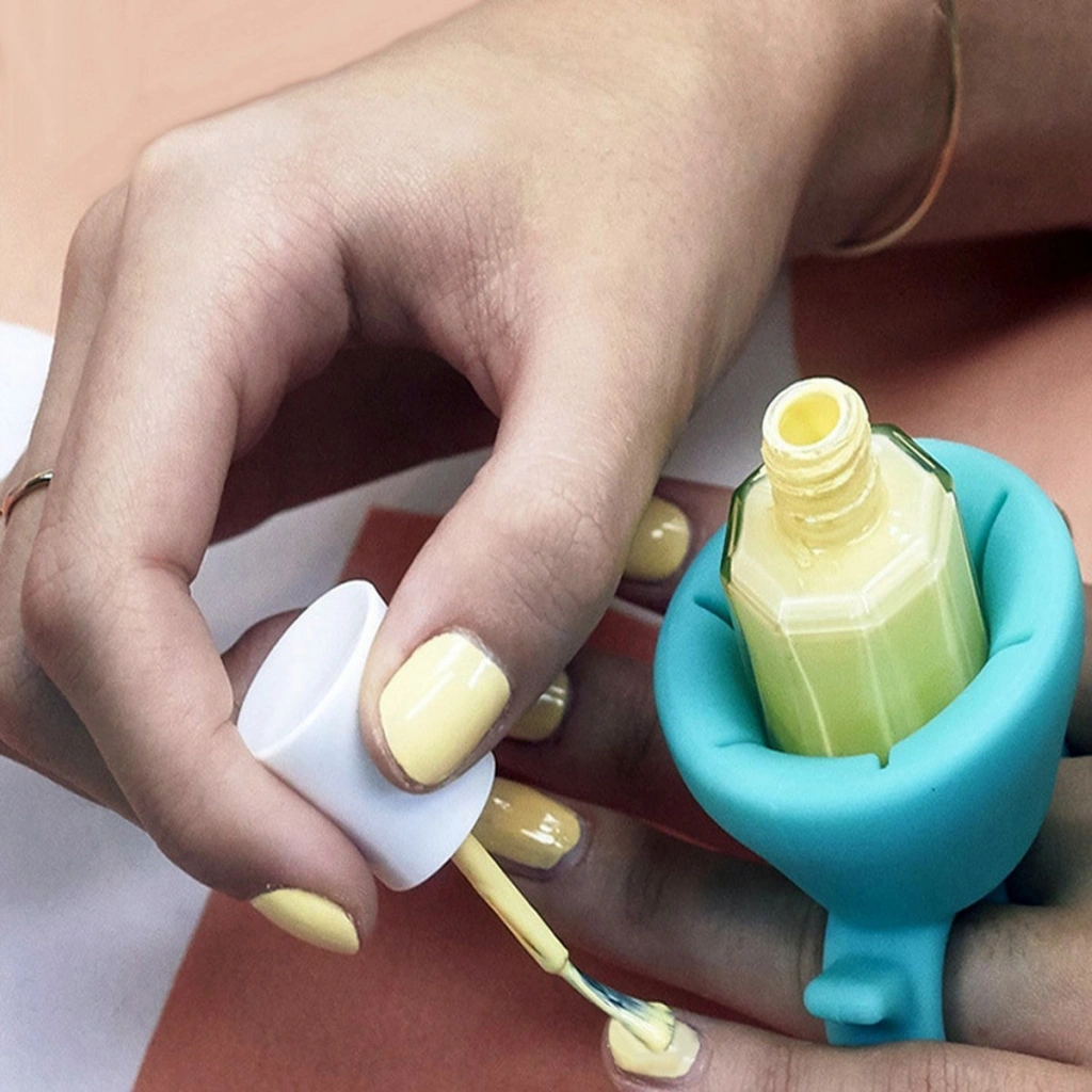Oje Tutucu İki parmağınıza yüzük takar gibi oturtuyorsunuz ve oje şişenizi tutucunuzun ortasına yerleştirerek ojenizi sürüyorsunuzYumuşak ve kaymaz yapısı sayesinde ojeyi kavrıyor ve düz bir zemin aramaksızın oturduğunuz yerden kolayca oje sürmenizi sağlıyorİnce yapılı şişeleri tutabildiği gibi kalın yapılı şişeleri de kolaylıkla içine yerleştirebilirsiniz Özellikler :  Malzeme   : SilikonEbat   : 5 x 6 cmAğırlık    : 20 g Paket İçeriği :  1 Adet Oje Tutucu Pratik Silikon Yüzük Aparat - Asorti