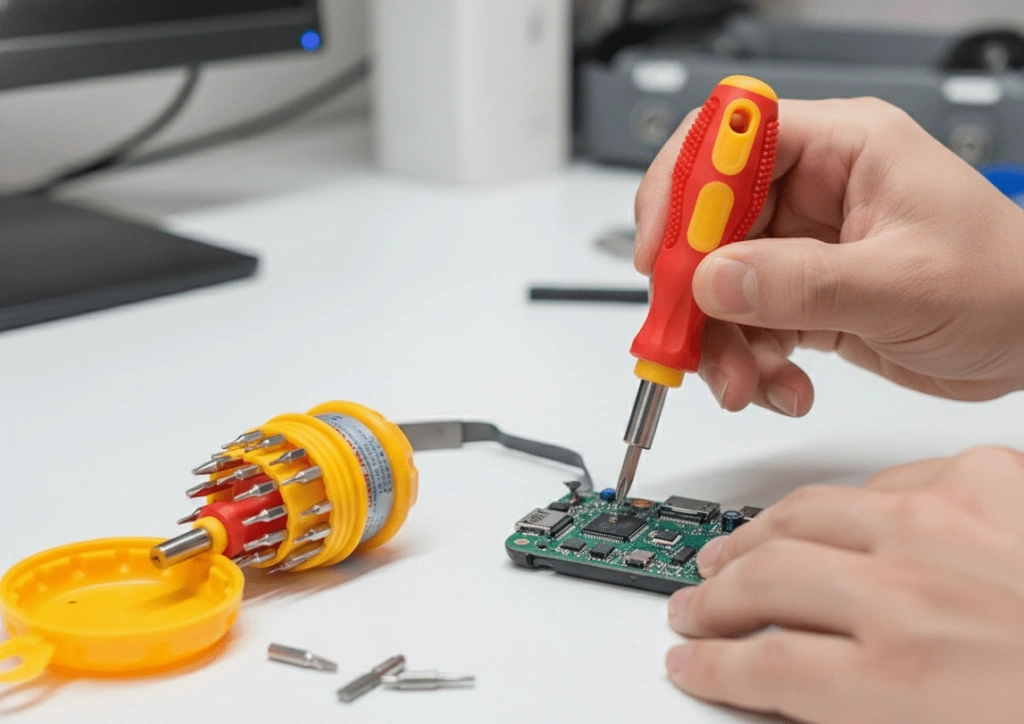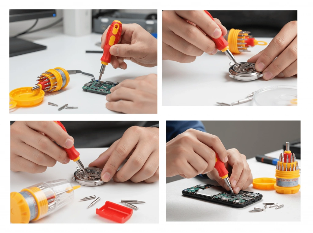 31 Parça Saatçi ve Telefoncu Onarım Tornavida Seti – Hassas Mini Tornavida Seti Hassas işler için tasarlanan 31 Parça Saatçi ve Telefoncu Onarım Tornavida Seti, evde, atölyede veya ofiste elektronik onarımlarınızı kolayca yapmanızı sağlar.Saat, gözlük, cep telefonu, tablet, bilgisayar, kamera ve küçük ev aletleri gibi cihazlarda yüksek hassasiyetle çalışmanızı mümkün kılar.Ergonomik tasarımı ve manyetik uçları sayesinde vidaları düşürmeden rahat kullanım sunar.Dalı çelik uçları, uzun ömürlü kullanım garantisi verir. Kompakt taşıma kutusu ile her zaman elinizin altında, her yerde kullanıma hazırdır. Öne çıkan özellikler: 31 parçalık çok amaçlı tamir seti Hassas tornavida uçları – saatçi, telefoncu, elektronikçi kullanımına uygun Manyetik uçlar sayesinde kolay vida tutuşu Kompakt saklama kutusu – taşınabilir ve düzenli Dalı çelik malzeme – uzun ömürlü performans Ürün Ölçüleri: 10 cm x 5 cm x 5 cm Paket İçeriği: 1 adet Tornavida Sapı 30 adet Mıknatıslı Tornavida Başlıkları