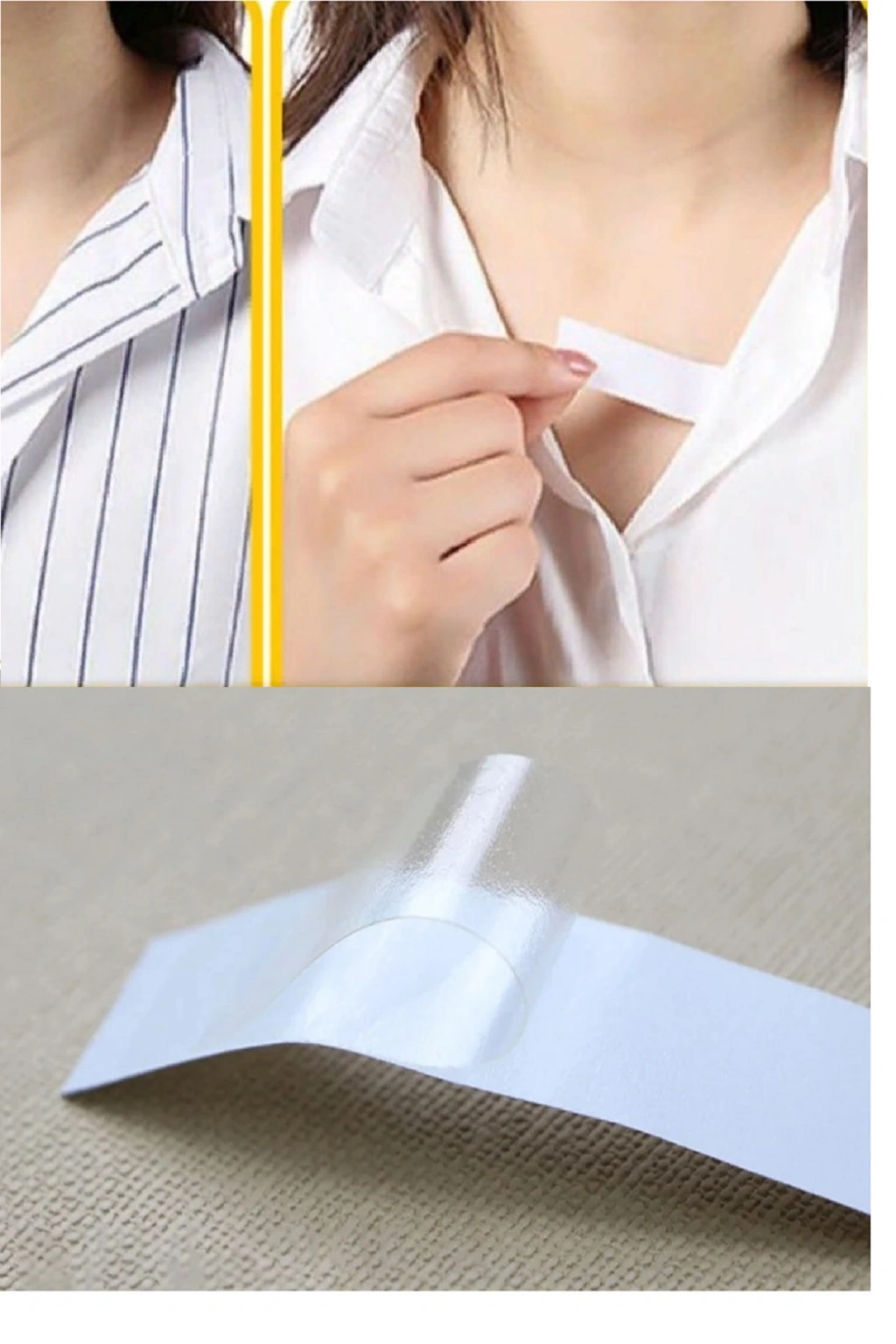 72 Adet Çift Taraflı Transparan Dekolte Kapatıcı Yapışkan Bant Paça Boyu Düzeltici -Askılı Elbise Bandı Elbise sabitleyici bant Boyun çizgileri, bluz kıyafetleri, açık taraflı elbiseler, yaka sabitleme, kravat şekillendirme ve daha fazlası için uygundur. Pantolon paça boyu ayarlaması için kullanılabilir Ayakkabı vurma önleyici , bluz elbise dekolte kapatıcı çift taraflı şeffaf yapışkan bant Ölçü : 8,5 cm x 2 cm Paket İçeriği : 72 adet elbise bandı