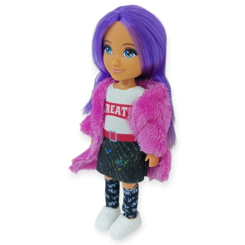 Ankiki Moda İkonu Bebek Figür 13 cm - Mor Saçlı "Great" Stil (Etekli Kombin)Küçük moda tutkunları için tasarlanan Ankiki Dress Sense serisi, tarzı ve hareket kabiliyetiyle oyun saatlerini bir moda şovuna dönüştürüyor! 13x3x4 cm ideal boyutları sayesinde her yere taşınabilen bu bebekler, çocukların tıcılığını ve stil algısını geliştirir.Genel Ürün Özellikleri Tam Hareketli Eklemler: Kollar, bacaklar, dizler ve baş kısmı hareket edebilir yapıdadır. Bu sayede bebeğinize istediğiniz pozu verdirebilir, gerçekçi oyun senaryoları kurabilirsiniz.Portatif Boyut: 13 cm boyu ile çantalara kolayca sığar, seyahatlerde ve dışarıda oyun oynamak için mükemmeldir.Detaylı Moda Tasarımı: Her bebek, kendine özgü saç rengi, kıyafet kombinasyonu ve aksesuarlarıyla bir stil ikonudur.Yaş Grubu: 3 yaş ve üzeri çocuklar için uygundur.Mor Saçlı "Great" Stil (Etekli Kombin)Modern ve şehirli bir tarzı temsil eden bu model, şıklığı detaylarda arayanlar için ideal.Stil: Mor saçlar ve "GREAT" yazılı modern bir sweatshirt.Dış Giyim: Gösterişli fuşya rengi peluş kürk ceket.Alt Giyim: Işıltılı detaylara sahip siyaini etek ve desenli uzun çoraplar.Aksesuar: Tarzı tamamlayan beyaz sne ayakkabılar.Öne Çıkan: Hem günlük hem de partiye hazır " & Stylish" bir görünüm.