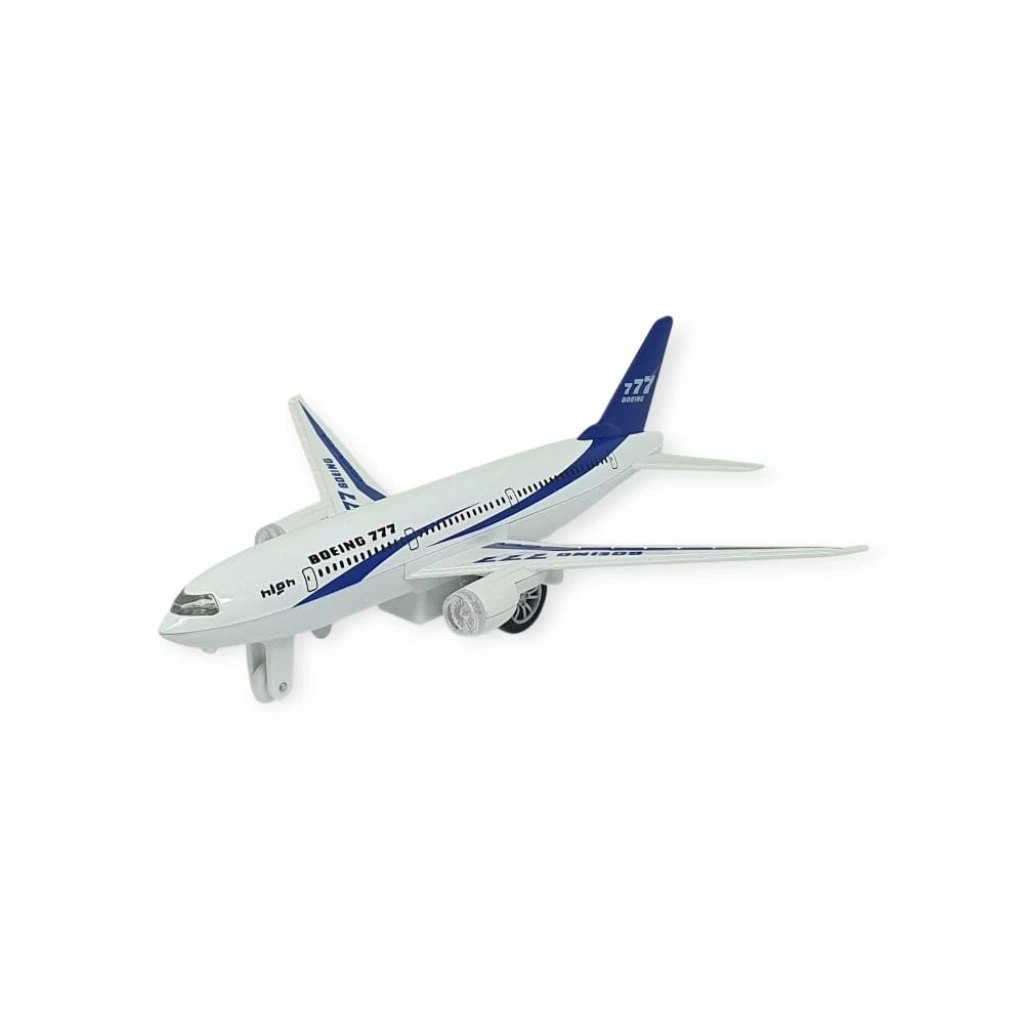 Çek Bırak Sesli Işıklı Metal Uçak - 180 - Mavi
