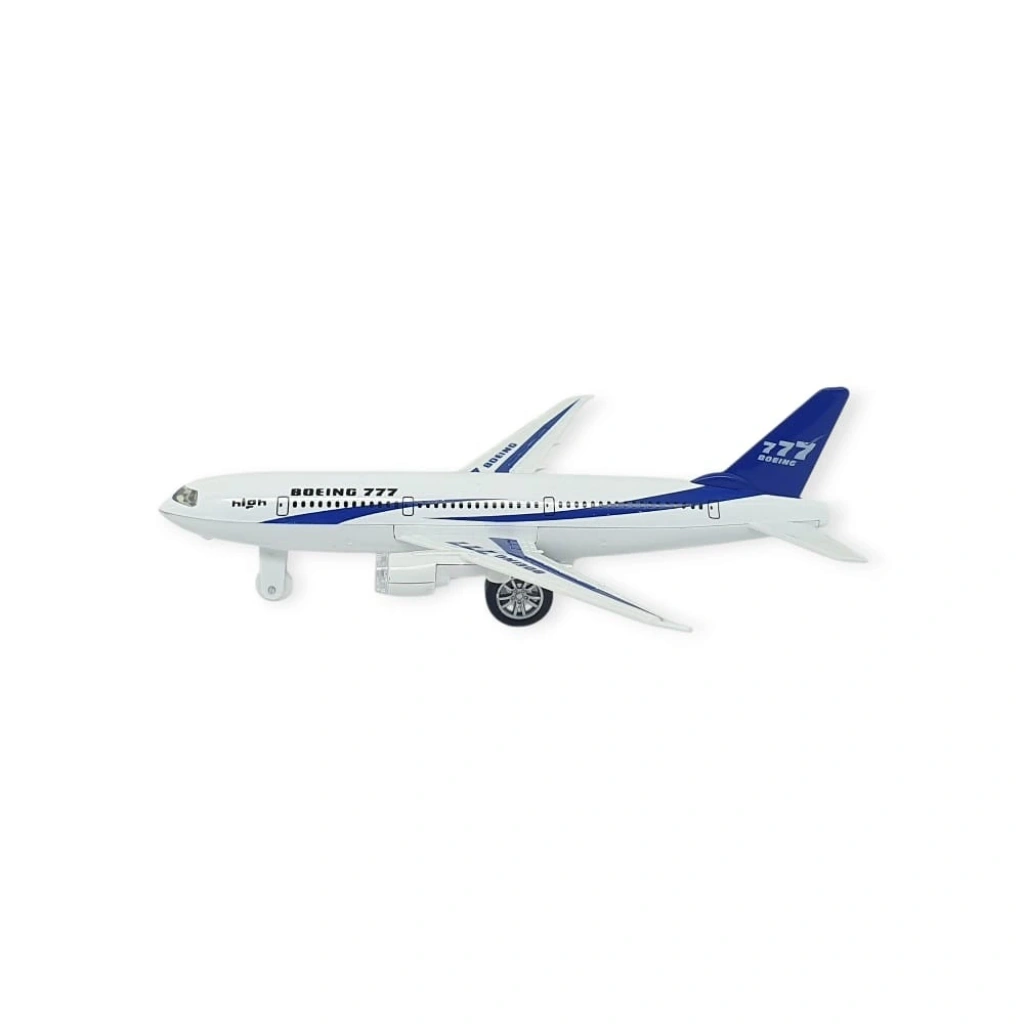 Çek Bırak Sesli Işıklı Metal Uçak - 180 - MaviUçak üst kısmı metal , alt bölümü  plastik malzemeden yapılmıştır.Uçak 18 x 5 x 18 cm boyutlarındadır.Uçak çek bırak özelliklidir.