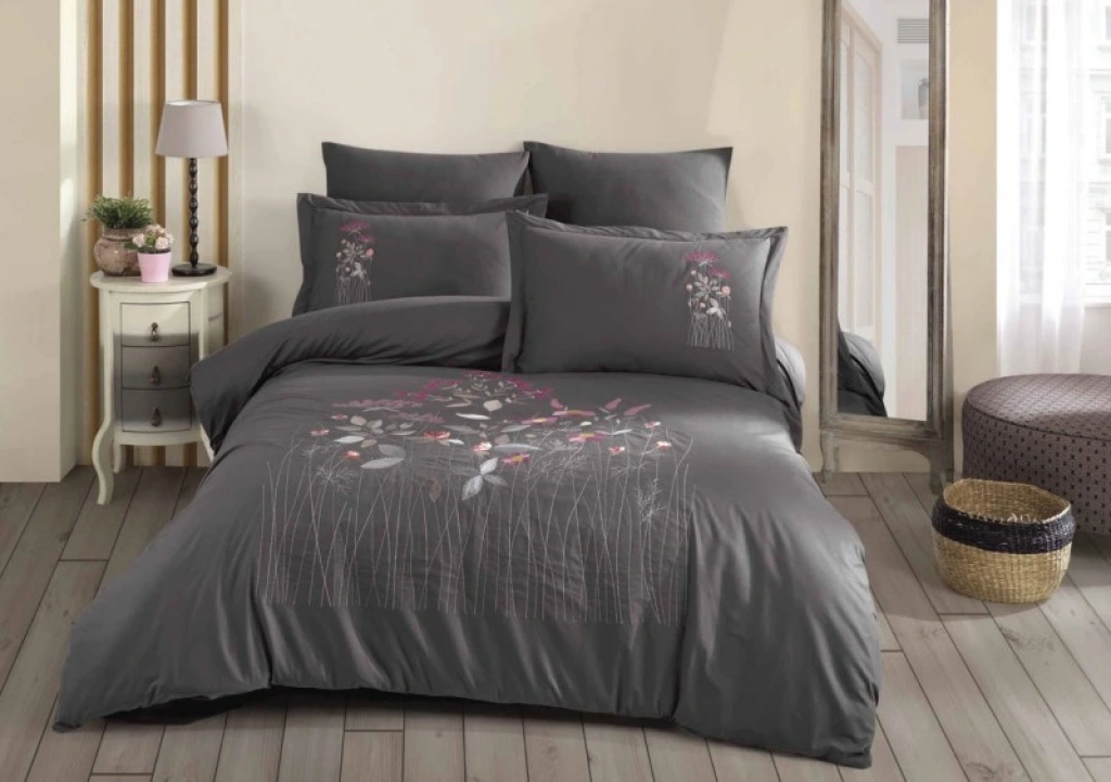Çift Kişilik Poplin Premium Nakışlı Nev Emilia Gri
