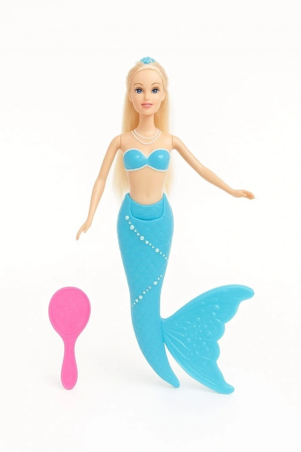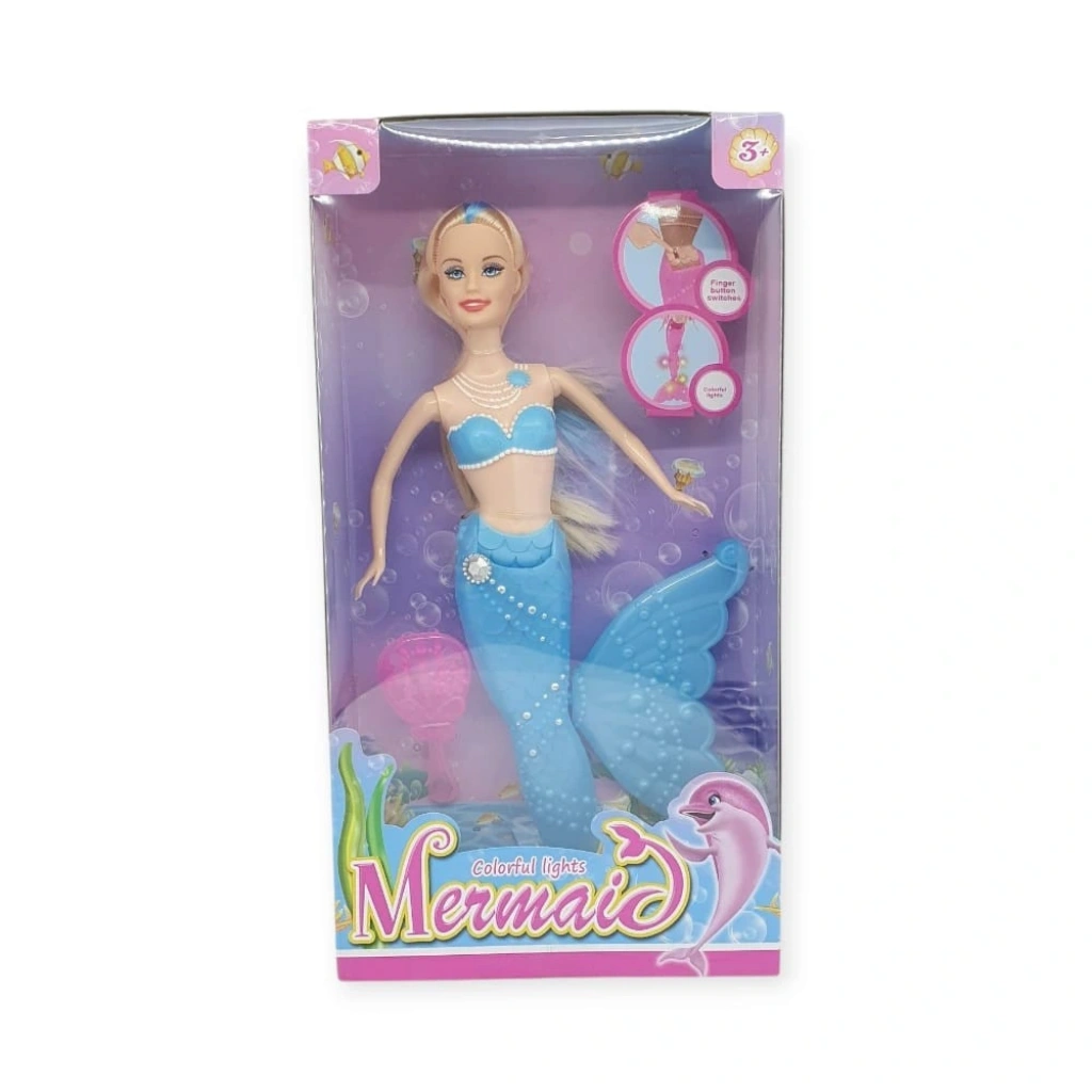 Deniz Kızı Işıklı Bebek - 2348/1-3 - MaviDeniz kızı kuyruğuyla beraber 34 cm boyutundadır.Paket içerisinde deniz kızıyla birlikte 1 adet tarak aksesuarı çıkmaktadır.Arkasında bulunan açma -kapama düğmesi ile ışıkları yanmaktadır.Deniz kızı kafa kısmı et , kalan kısımlar sert plastik malzemeden üretilmiştir.Piller ürün içerisinde bulunmaktadır.