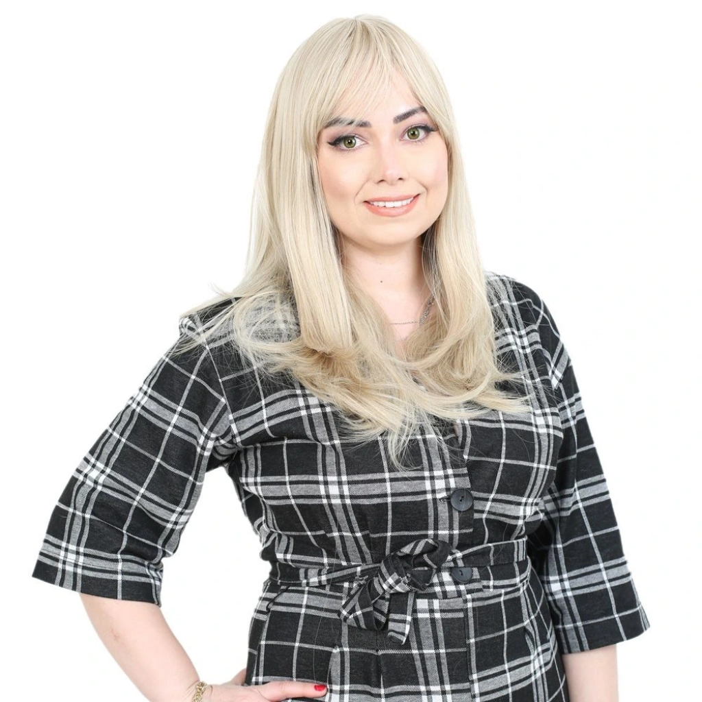 Düz Perçemli Orta Boy Fiber Sentetik Peruk - Balköpüğü / Platin Röfleli1.Sınıf fiber sentetiktir.Orta boy, düz ve perçemli bir modeldir.Tepe hariç 45 - 50 cm ve 210 - 230 gr civarındadır.Gerçek görünüme yakındır ve parlama yapmaz.Üst tepe kısmı deri görünümlüdür.İçi filelidir, hava alabilen özel bir yapısı vardır.İç arka kısmında baş ölçünüze göre ayarlanabilir kopçaları mevcuttur, her kafa yapısına uyum sağlayabilir.Takmadan önce saçlarınızı bir bone ile toplayıp kapatırsanız, kayma veya düşme gibi sorunlarla karşılaşmazsınız.130-140 dereceyi geçmemesi koşuluyla maşa ve fön uygulanabilir.Düzleştirebilirsiniz.Yıkanabilir, taranabilir.Ilık ve kremli bir su karışımı içinde durulayıp yıkayabilirsiniz.Yıkama sonrasında kurumaya bırakın,kuruduktan sonra mavi su sıkıp uçlardan dibe doğru hafifçe tarayınız, sonrasında kullanabilirsiniz,yada bir kafa mankeni üzerinde muhafaza edebilirsiniz.Tülerme, elektriklenme vb. problemlerin önüne geçmek için; her takıp çıkardıktan sonra mavi su sıkıp taramanızı tavsiye ederiz.
