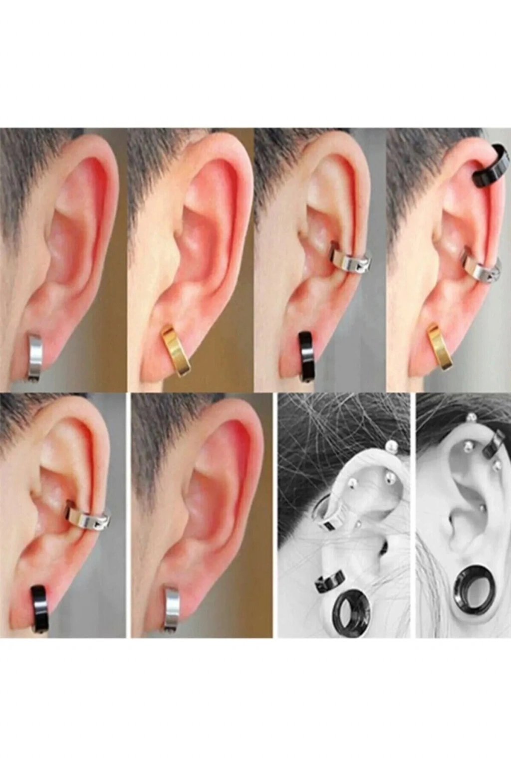 Erkek Küpesi - 2 Adet Çelik Kıstırmalı Küpe Paslanmaz Atmaz Çelik Gümüş Renk Küpe