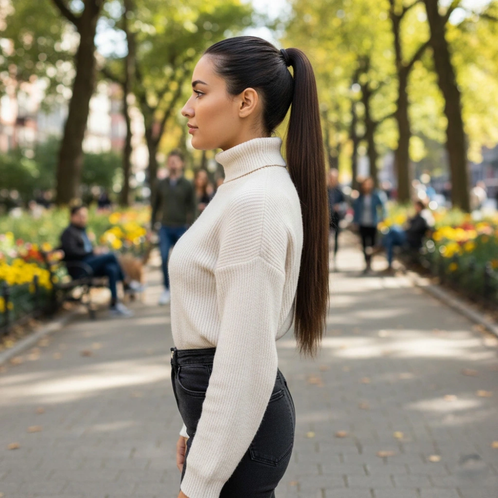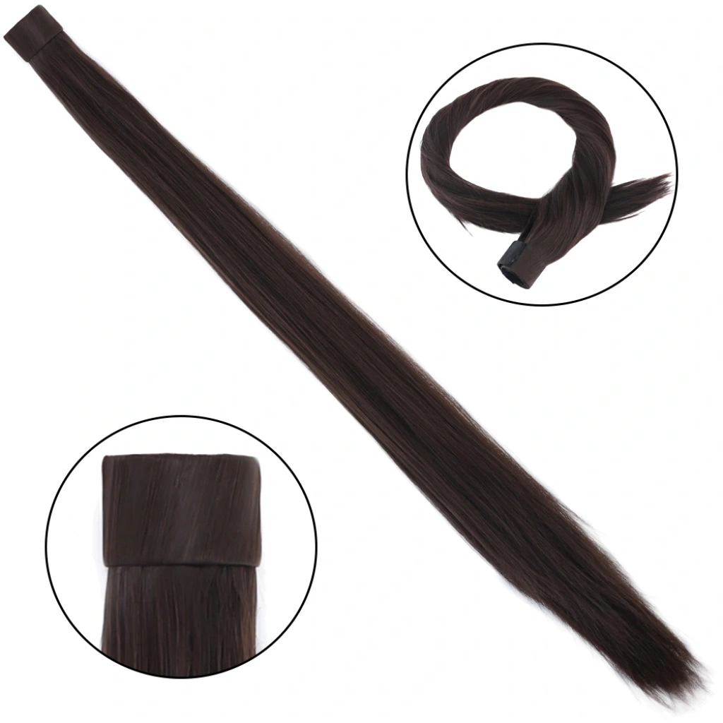 Fiber Sentetik Sihirli At Kuyruğu - Koyu KumralFiber sentetiktir.60-70 cm uzunluğunda, 150-170 Gr. civarındadır.Gerçek görünüme yakındır parlama yapmaz.Saçınızı topladıktan sonra, at kuyruğunun tokalı kısmını açıp saçınızdan geçirin.Özel sistemi sayesinde saçı kolay ve pratik bir şekilde kavrar.Ilık fön ve maşa uygulayabilirsiniz.130 - 140 dereceyi geçmemesi koşuluyla düzleştirebilirsiniz.Saçın karışma dolaşma ihtimaline karşılık her takıp çıkardıktan sonra mavi su sıkıp taramanızı öneririz.Tarama yöntemi uçlardan dibe doğru hafifçe olmalıdır.Ilık ve kremli su ile yıkayabilirsiniz.
