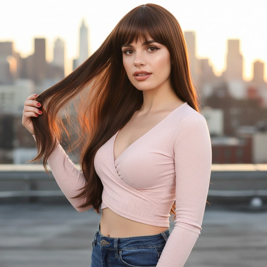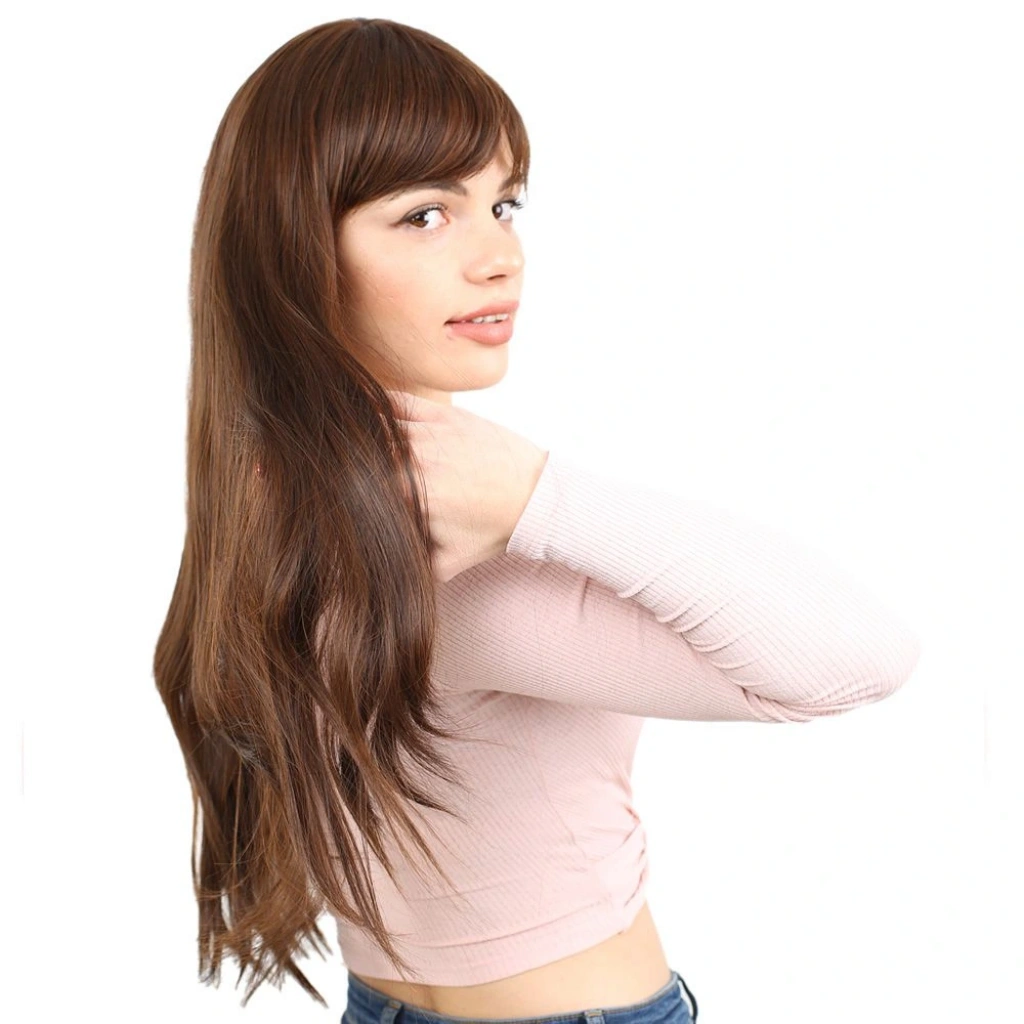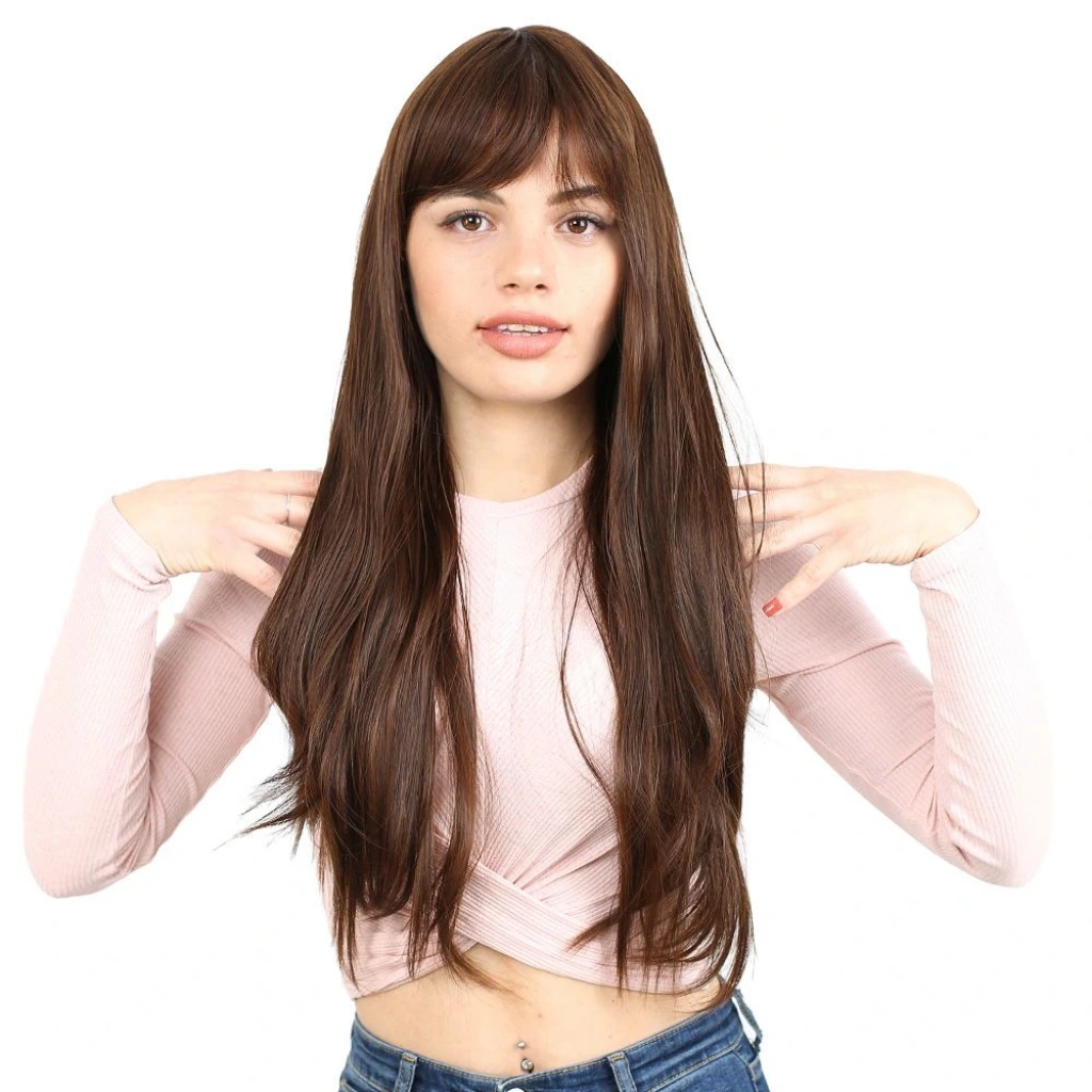 Fiber Sentetik Uzun Düz Kahküllü Peruk - Kahve Karamel1.Sınıf fiber sentetiktir.Uzun, düz ve kahküllü bir modeldir.Tepe hariç 65 cm ve sadece saç 260 gr civarındadır.Gerçek görünüme yakındır ve parlama yapmaz.İçi filelidir, hava alabilen özel bir yapısı vardır.İç arka kısmında baş ölçünüze göre ayarlanabilir kopçaları mevcuttur, her kafa yapısına uyum sağlayabilir.Takmadan önce saçlarınızı bir bone ile toplayıp kapatırsanız, kayma veya düşme gibi sorunlarla karşılaşmazsınız.130-140 dereceyi geçmemesi koşuluyla maşa ve fön uygulanabilir.Düzleştirebilirsiniz.Yıkanabilir, taranabilir.Ilık ve kremli bir su karışımı içinde durulayıp yıkayabilirsiniz.Yıkama sonrasında kurumaya bırakın,kuruduktan sonra mavi su sıkıp uçlardan dibe doğru hafifçe tarayınız, sonrasında kullanabilirsiniz,yada bir kafa mankeni üzerinde muhafaza edebilirsiniz.Tülerme, elektriklenme vb. problemlerin önüne geçmek için; her takıp çıkardıktan sonra mavi su sıkıp taramanızı tavsiye ederiz.