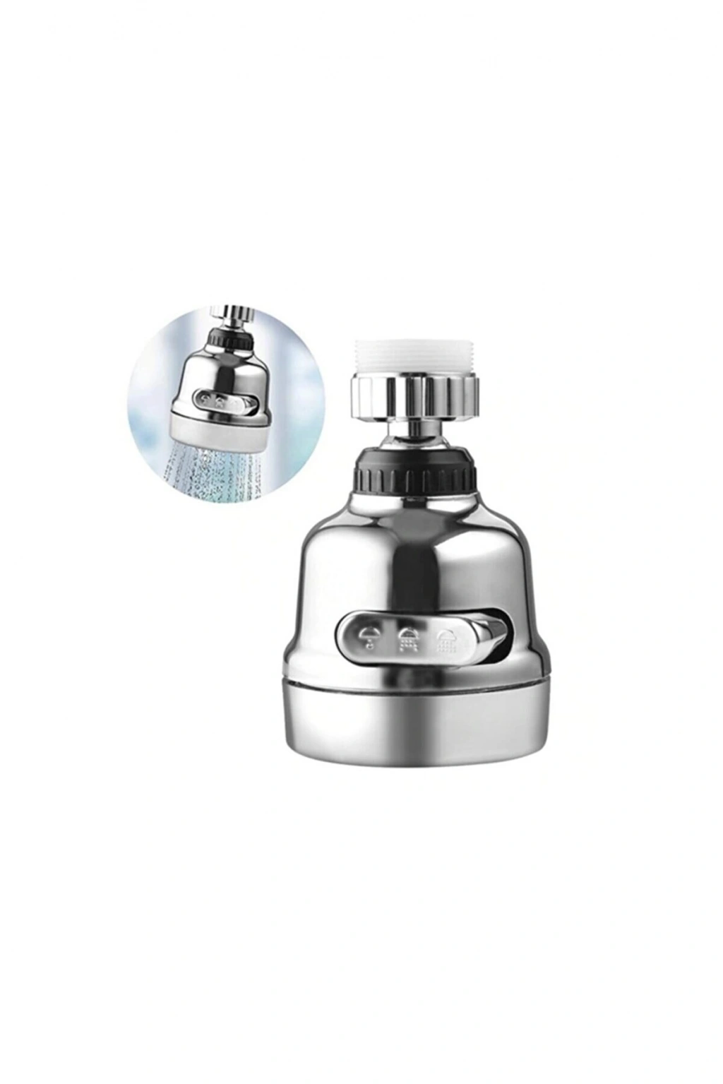 Kireç Önleyici Filtreli Krom 3 Fonksiyonlu Oynar Musluk Başlığı - 360 Derece DönebilenYüksek kaliteli ABS ,güvenli ve dalıdır 360 ° dönebilir, istediğiniz açıyı verebilirsiniz , mutfak lavabo temizliği için işinizi kolaylaştırır .3 mod ayarı: 1- merkezi mod2-duş modu 3-merkezi + duş modu hepsi tek düğmede...Basınçlı olması sayesinde su tasarrufu sağlar.Kurulumu kolaydır, alet gerektirmez, Malzeme: ABS + silikon + paslanmaz çelikRenk: KromÜrün Boyutları : 8.5 x 5.3 x 2.4 cm Paket içeriği :1 Oynar 3 Fonksiyonlu Krom Oynar Musluk Başlığı1 Adet Kireç Önleyici Filtre* 24mm iç dişli veya 22mm dış dişli mutfak musluğu için uygundur.** Ürün musluk başlığıdır, batarya içermemektedir.