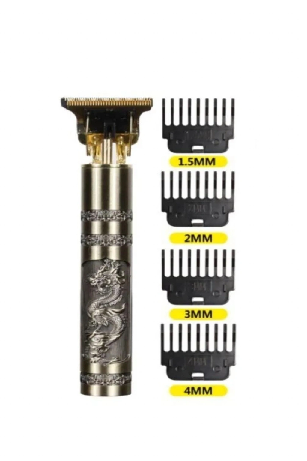 Gold Uçlu Vintage Şarjlı Traş Makinesi Saç Sakal Ense Çizim Vucüt Kılı Tıraş MakinasıŞarj edilerek kullanılan bu sakal ense çizim makinesini isterseniz kablo ile isterseniz de şarj ederek kullanabileceksiniz. 4,5 saat gibi kısa bir sürede şarj olan sakal ense çizim makinesi şarj olduktan sonra 180 dakika boyunca kesintisiz olarak kullanılabilecektir. Bu kablosuz kullanma imkânı sayesinde çok kolay ve özgür şekilde kullanabilirsiniz.Keskin Bıçaklar Keskin bıçakları sayesinde dakikalar içerisinde ve olabildiğince kolay şekilde tıraşınızı olabileceksiniz. En sert kılları bile keskin bıçaklar sayesinde kesebilirsiniz. Kesiciliğinin yanında cildinize çok sürtünmediği için akıcı bir tıraş deneyimi sunacaktır.Rahat Kavrama Sakal Ense Çizim Makinasının sapı elinize uygun olarak tasarlandığı için size rahat ve kolay bir tıraş deneyimi sağlayacaktır. 3 Farklı Tarak İmkanı 3 adet tarağa sahip olan bu ürünün istediğiniz gibi kullanabileceksiniz. İstediğiniz tarağı takarak farklı kesimler sağlayabileceksiniz. Mükemmel Görünüm Altın renginde olan bu ürün sonra derece şık ve özenli şekilde tasarlanmıştır. Makinenin yüzeyinde bulunan çeşitli motifler ve işlemeler ona son derece farklı bir görünüm sunmaktadır Desenleri farklılık gösterebilir. 2 saat şarj süresi ile , 120 dk kullanım sağlar Ölçü : 16 cmBaşlık kısmı 4,5 cm Paket İçeriği : 1 Adet Retro traş makinesi4 adet başlık1 adet temizleme yağı1 adet temizleme fırçası1 adet şarj kablosu