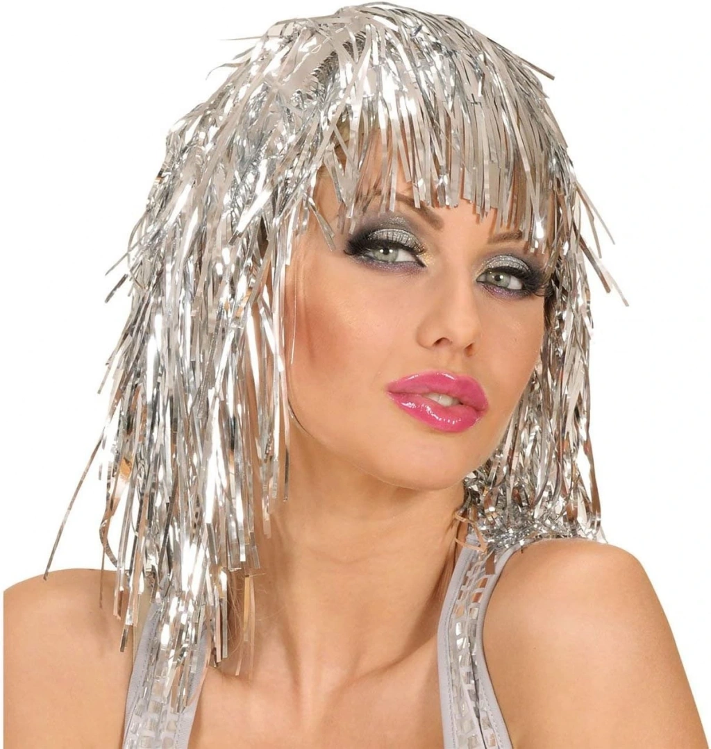 Parti tarzınıza parıltı katın! Göz alıcı metalize gümüş peruk, ışıltılı yapısıyla ışık altında mükemmel bir etki tır. Eğlenceli davetler, yılbaşı partileri, doğum günü kutlamaları, sahne gösterileri ve karnavallar için idealdir.Esnek yapısı sayesinde her kafa ölçüsüne kolayca uyum sağlar. Hafif ve rahat yapısıyla uzun süreli kullanımlarda bile konfor sunar. Kostümlerle mükemmel uyum sağlak görünümünüze enerji ve parlaklık katar.Ürün Özellikleri Renk: Metalize Gümüş Materyal: Parlak Folyo Malzeme Kullanım Alanı: Parti, yılbaşı, doğum günü, sahne, kostüm etkinlikleri Unisex (kadın ve erkek kullanıma uygundur) Esnek yapısı ile rahat kullanım Işığı yansıtan parlak folyo şerit görünümü Peruk içerisinde kafaya göre uyum sağlayan esneyen astar bulunmaktadır Kullanım Önerileri Disko ve dans partilerinde ışıkla parlayan tarz oluşt. Cadılar Bayramı, karnaval ve yılbaşı temalı kostümlerle kombinleyin. Fotoğraf çekimlerinde ışıltılı bir detay olarak kullanabilirsiniz.