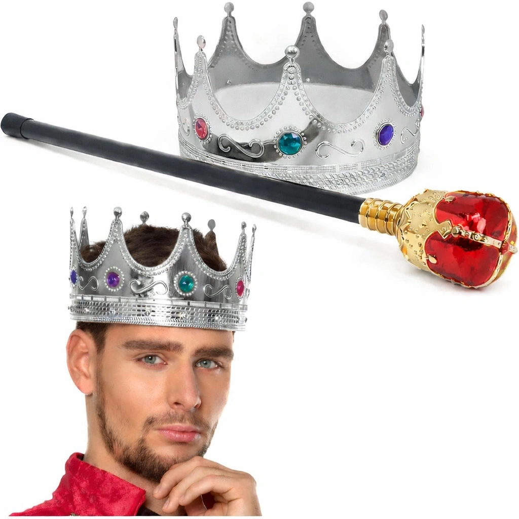 Gümüş renk taşlı kral tacı ve kırmızı gold topuzlu kral asası ile kraliyet şıklığını tamamlayın.Partiler, kostüm etkinlikleri, doğum günleri, sahne gösterileri ve eğlenceli organizasyonlar için özel olarak tasarlanmıştır.Ürün Özellikleri 1 adet gümüş renk kral tacı 60 cm 1 adet kırmızı gold topuzlu kral asası Taşlı ve detaylı kraliyet tasarımı Parti, kostüm ve sahne kullanımı için ideal Hafif ve rahat kullanım Yetişkin ve genç kullanımına uygundur Kullanım Alanları Kral & kraliçe kostümleri Doğum günü ve temalı partiler Sahne, tiyatro ve gösteriler Eğlenceli fotoğraf çekimleri Not: Ürün aksesuar amaçlıdır