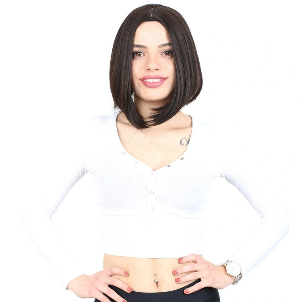 Kahkülsüz Düz Kısa Fiber Sentetik Peruk - Kahverengi1.Sınıf fiber sentetiktir.Kısa, düz ve kahkülsüz bir modeldir.Ön kısmları arkaya göre hafifçe uzundur.Tepe hariç, arka kısım 20 - 25 cm, ön kısım 25 - 30 cm ve 170 - 180 gr civarındadır.Gerçek görünüme yakındır ve parlama yapmaz.Üst ön kısım deri görünümlüdür.İçi filelidir, hava alabilen özel bir yapısı vardır.İç arka kısmında baş ölçünüze göre ayarlanabilir kopçaları mevcuttur, her kafa yapısına uyum sağlayabilir.Takmadan önce saçlarınızı bir bone ile toplayıp kapatırsanız, kayma veya düşme gibi sorunlarla karşılaşmazsınız.130-140 dereceyi geçmemesi koşuluyla maşa ve fön uygulanabilir.Düzleştirebilirsiniz.Yıkanabilir, taranabilir.Ilık ve kremli bir su karışımı içinde durulayıp yıkayabilirsiniz.Yıkama sonrasında kurumaya bırakın,kuruduktan sonra mavi su sıkıp uçlardan dibe doğru hafifçe tarayınız, sonrasında kullanabilirsiniz,yada bir kafa mankeni üzerinde muhafaza edebilirsiniz.Tülerme, elektriklenme vb. problemlerin önüne geçmek için; her takıp çıkardıktan sonra mavi su sıkıp taramanızı tavsiye ederiz.