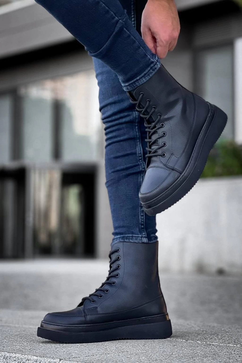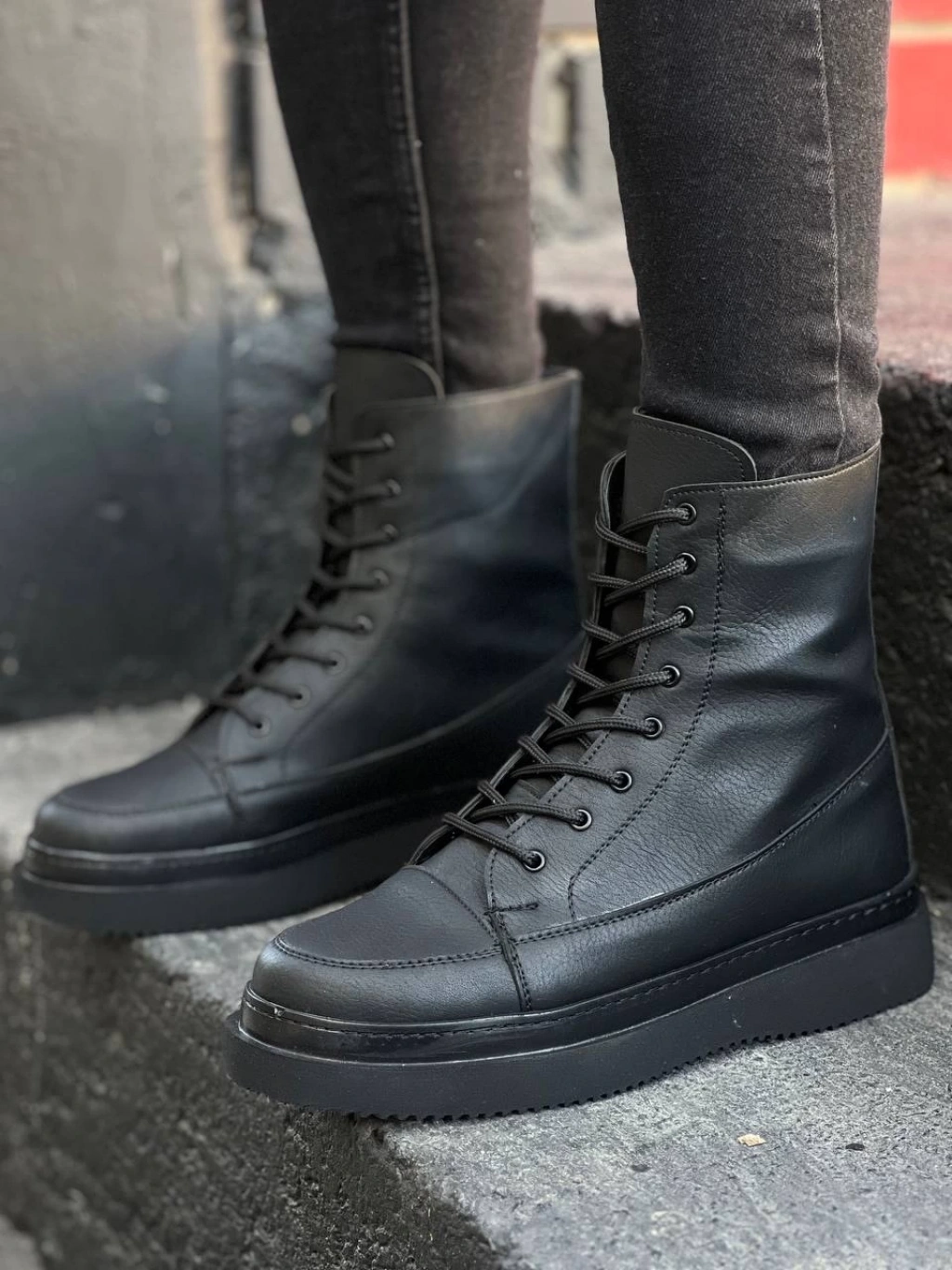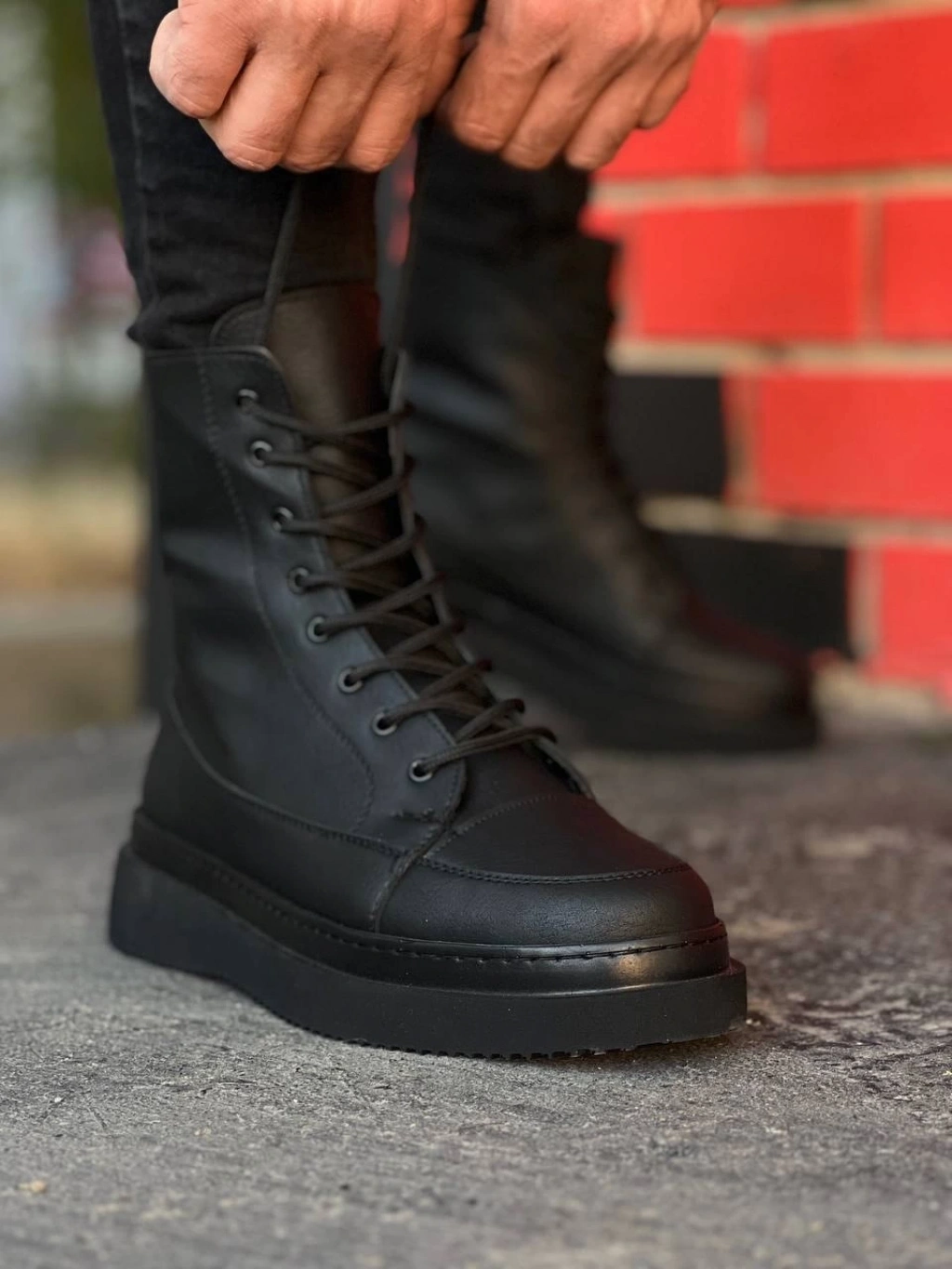 KB-0991 Siyah Cilt Siyah Yüksek Taban Bağcıklı Postal Bot