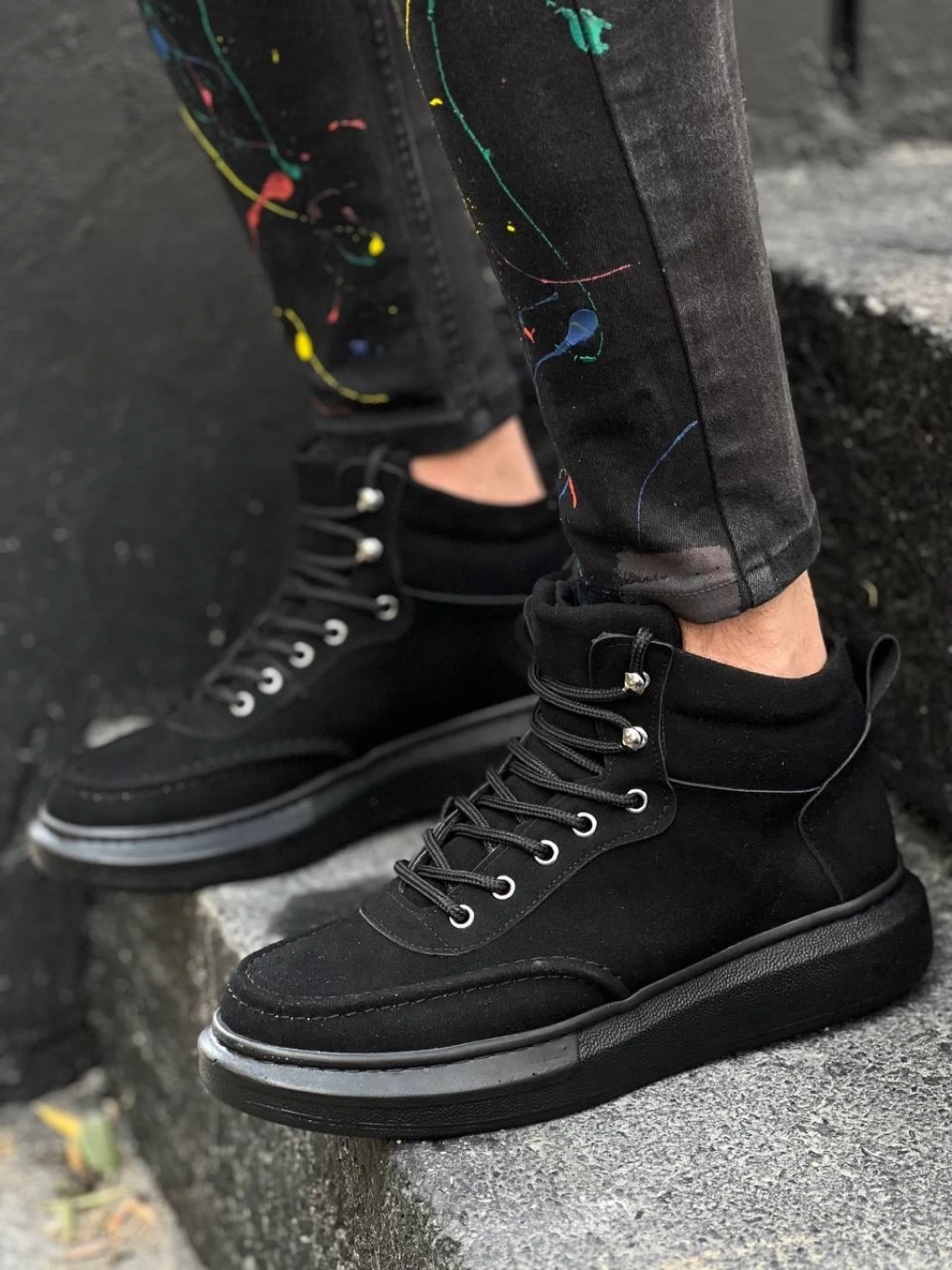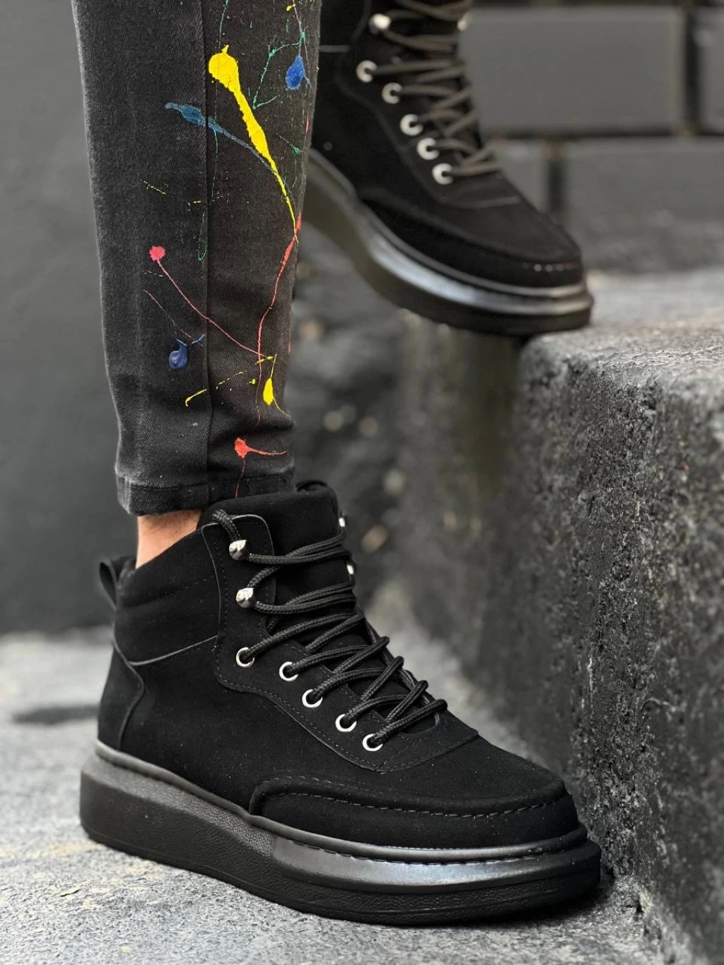 KB-0994 Siyah Süet Siyah Yüksek Taban Erkek Bilek Bot