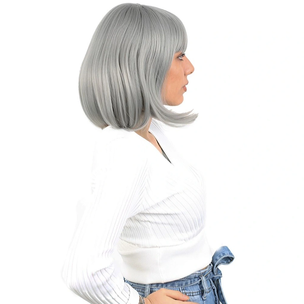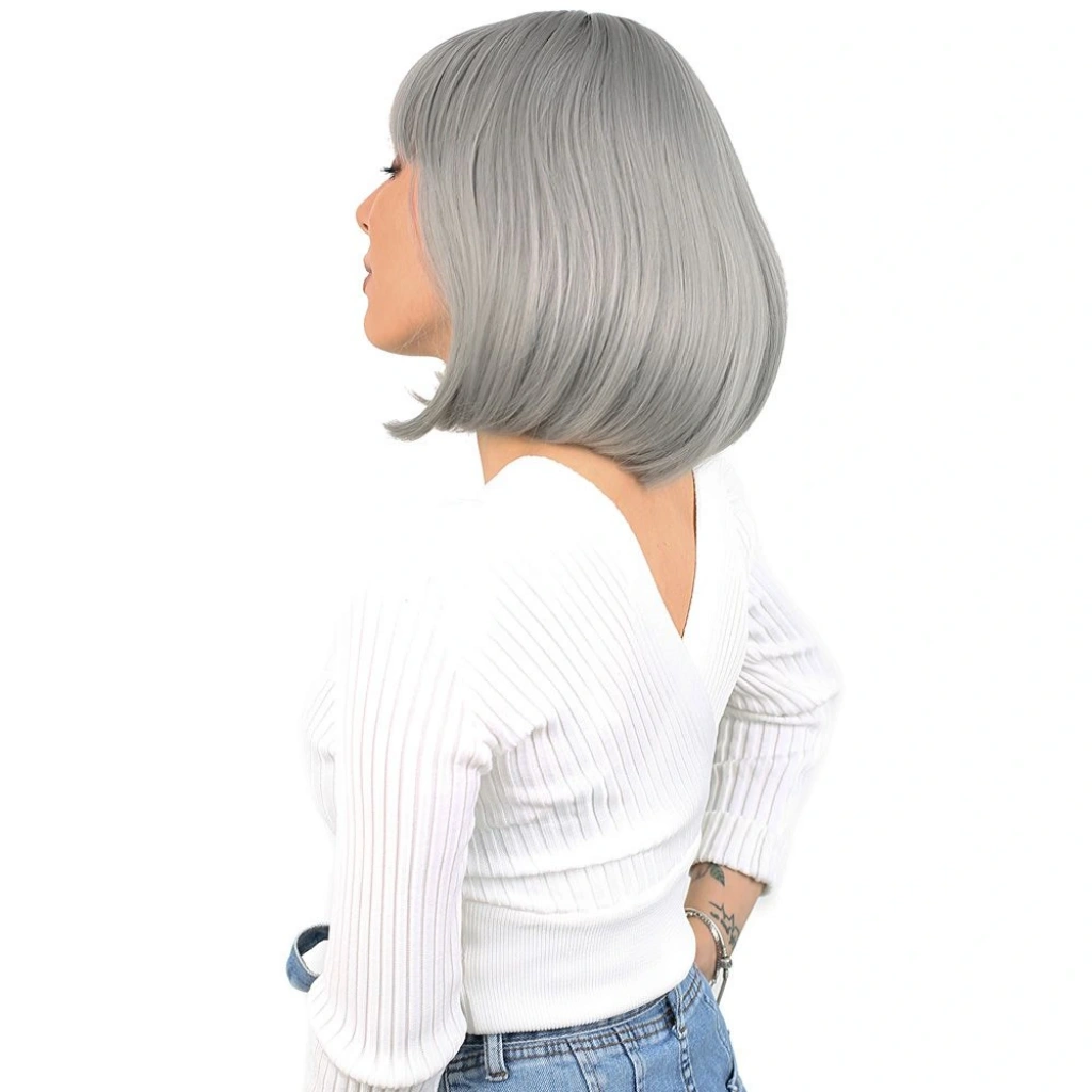 Küt Kahküllü Fiber Sentetik Peruk - Gri1.Sınıf fiber sentetiktir.Kısa, düz küt ve kahküllü bir modeldir.Tepe hariç 25 - 30 cm ve 190 - 200 gr civarındadır.Gerçek görünüme yakındır ve parlama yapmaz.İçi filelidir, hava alabilen özel bir yapısı vardır.İç arka kısmında baş ölçünüze göre ayarlanabilir kopçaları mevcuttur, her kafa yapısına uyum sağlayabilir.Takmadan önce saçlarınızı bir bone ile toplayıp kapatırsanız, kayma veya düşme gibi sorunlarla karşılaşmazsınız.130-140 dereceyi geçmemesi koşuluyla maşa ve fön uygulanabilir.Düzleştirebilirsiniz.Yıkanabilir, taranabilir.Ilık ve kremli bir su karışımı içinde durulayıp yıkayabilirsiniz.Yıkama sonrasında kurumaya bırakın,kuruduktan sonra mavi su sıkıp uçlardan dibe doğru hafifçe tarayınız, sonrasında kullanabilirsiniz,yada bir kafa mankeni üzerinde muhafaza edebilirsiniz.Tülerme, elektriklenme vb. problemlerin önüne geçmek için; her takıp çıkardıktan sonra mavi su sıkıp taramanızı tavsiye ederiz.