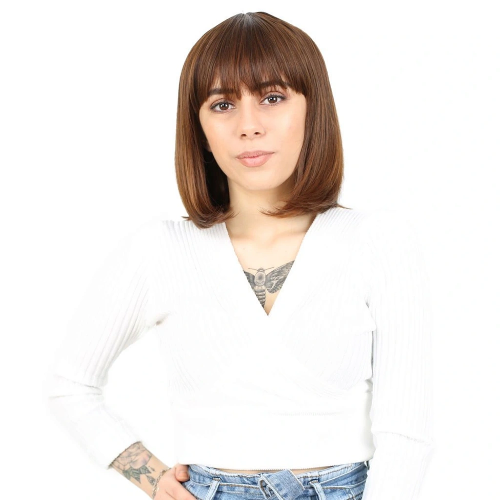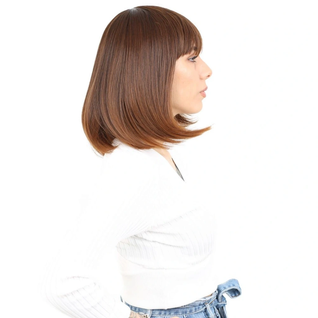 Küt Kahküllü Fiber Sentetik Peruk - Kahve Karamel1.Sınıf fiber sentetiktir.Kısa, düz küt ve kahküllü bir modeldir.Tepe hariç 25 - 30 cm ve 190 - 200 gr civarındadır.Gerçek görünüme yakındır ve parlama yapmaz.İçi filelidir, hava alabilen özel bir yapısı vardır.İç arka kısmında baş ölçünüze göre ayarlanabilir kopçaları mevcuttur, her kafa yapısına uyum sağlayabilir.Takmadan önce saçlarınızı bir bone ile toplayıp kapatırsanız, kayma veya düşme gibi sorunlarla karşılaşmazsınız.130-140 dereceyi geçmemesi koşuluyla maşa ve fön uygulanabilir.Düzleştirebilirsiniz.Yıkanabilir, taranabilir.Ilık ve kremli bir su karışımı içinde durulayıp yıkayabilirsiniz.Yıkama sonrasında kurumaya bırakın,kuruduktan sonra mavi su sıkıp uçlardan dibe doğru hafifçe tarayınız, sonrasında kullanabilirsiniz,yada bir kafa mankeni üzerinde muhafaza edebilirsiniz.Tülerme, elektriklenme vb. problemlerin önüne geçmek için; her takıp çıkardıktan sonra mavi su sıkıp taramanızı tavsiye ederiz.