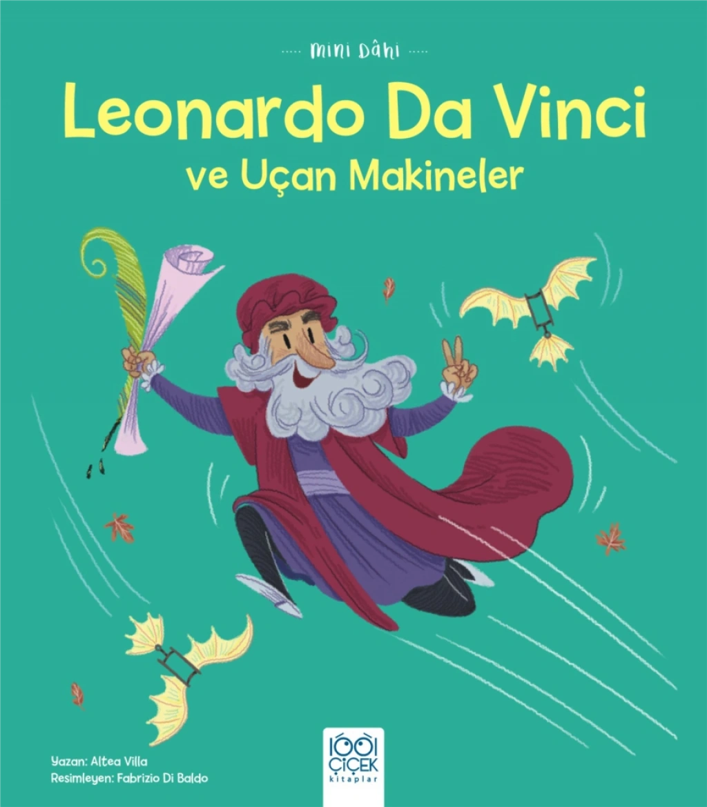 Einstein, Leonardo, Frida ve Curie gibi dâhiler çalışmalarına nereden ilham aldı? Bu dizinin amacı, tarihin bazı önemli kişilerini, çocukların ilgi duyup bağ kurabileceği bir tarzda tanıtmaktır. Böyle dâhiler, küçük okuyuculara ilham verip daha büyük düşünmeye teşvik edebilirler. BÜYÜK ÖYKÜLER İÇİN KÜÇÜK KİTAPLAR DEV DÜŞÜNCELER İÇİN MİNİ DÂHİLER Altea Villa sosyal tarih dalında felsefe doktorudur. 2018’den buyana çocuk kitabı yazmaktadır. Fabrizio Di B 2001’de güzel sanatlar ve göstergebilimden mezun oldu. Uluslararası Çizgi Roman Okulu’nda ressam, Avrupa Tasarım Enstitüsü’nde grafik tasarımcı olarak iki doktora yaptı. Sanat yönetmeni ve ressam olarak çalışıyor. Ürün Adı: Mini Dahi Leonardo Da Vinci ve Uçan MakinelerÜrün Kodu: 9786053419570Yazar: Altea VillaBasım Yılı: 2023Kapak Türü: Karton KapakSayfa Sayısı: 24Kağıt Cinsi: 2. HamurÇevirmen: