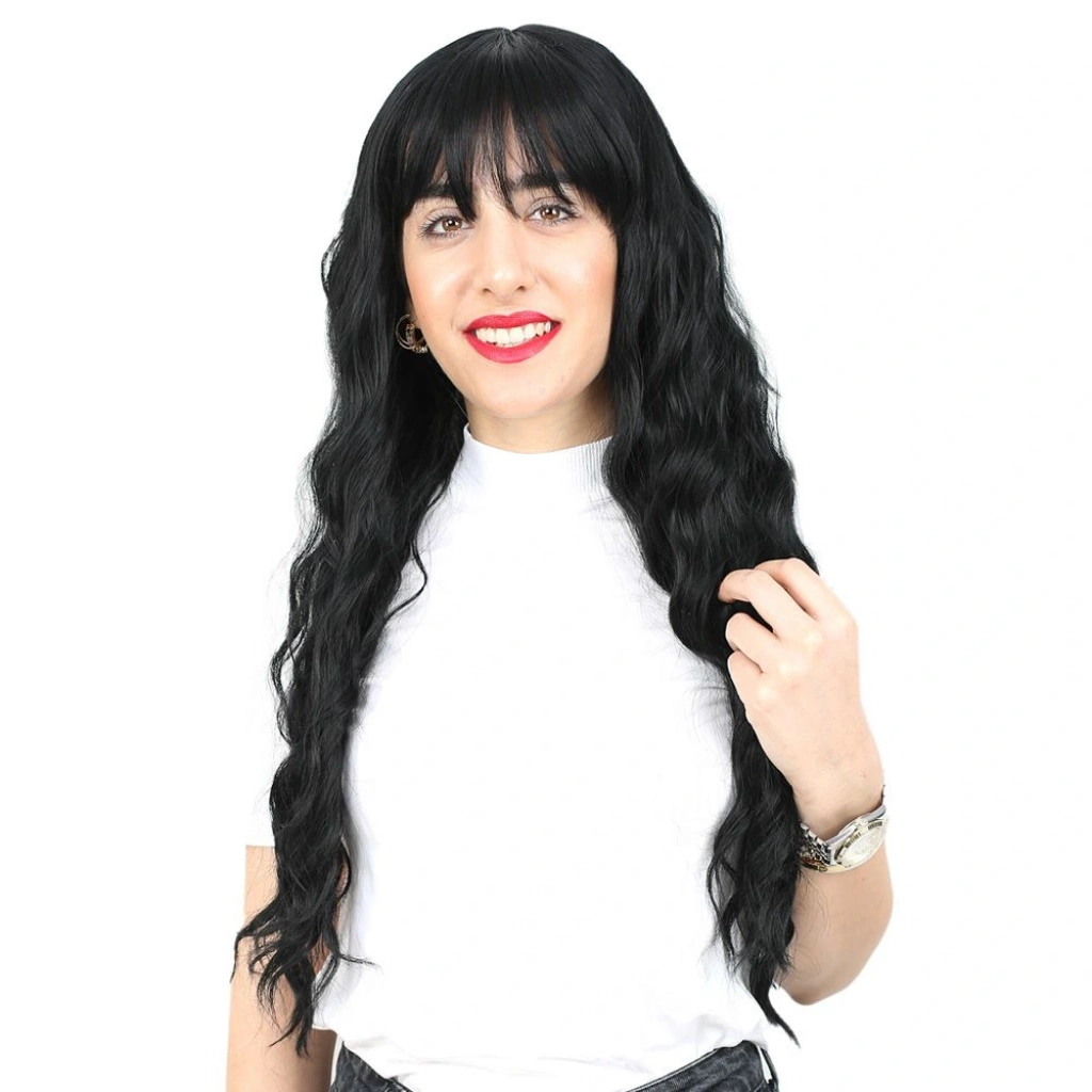 Perçemli Uzun Su Dalgası Fiber Sentetik Peruk- Siyah1.Sınıf fiber sentetiktir.Uzun, su dalgası ve perçemli bir modeldir.Tepe hariç 60 cm ve sadece saç 248 gr civarındadır.Gerçek görünüme yakındır ve parlama yapmaz.İçi filelidir, hava alabilen özel bir yapısı vardır.İç arka kısmında baş ölçünüze göre ayarlanabilir kopçaları mevcuttur, her kafa yapısına uyum sağlayabilir.Takmadan önce saçlarınızı bir bone ile toplayıp kapatırsanız, kayma veya düşme gibi sorunlarla karşılaşmazsınız.130-140 dereceyi geçmemesi koşuluyla maşa ve fön uygulanabilir.Yıkanabilir, taranabilir.Ilık ve kremli bir su karışımı içinde durulayıp yıkayabilirsiniz.Yıkama sonrasında kurumaya bırakın,kuruduktan sonra mavi su sıkıp uçlardan dibe doğru hafifçe tarayınız, sonrasında kullanabilirsiniz,yada bir kafa mankeni üzerinde muhafaza edebilirsiniz.Tülerme, elektriklenme vb. problemlerin önüne geçmek için; her takıp çıkardıktan sonra mavi su sıkıp taramanızı tavsiye ederiz.Dalga yapısı, düzleştirilmediği sürece bozulmaz.