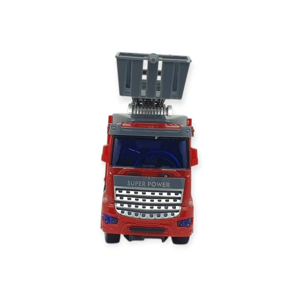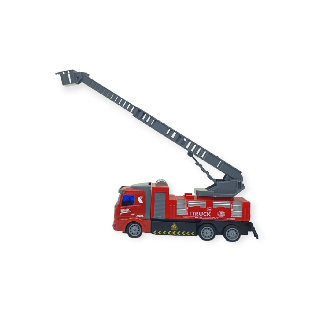 Uzaktan Kumandalı İş Makinaları - İtfaiye Aracı İtfaiye aracı 20 x 5 x 10 cm boyutlarındadır.Araç merdiveni manuel olarak hareket ettirilebilmektedir.Araç sesli özelliklidir.İtfaiye aracı 3 adet 1,5V AA , kumanda 2 adet 1,5V AA pil ile çalışmaktadır. ( Piller pakete dahil değildir. )