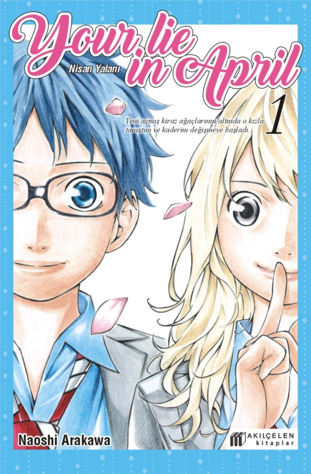 Yeni açmış kiraz ağaçlarının altında o kızla tanıştım ve kaderim değişmeye başladı.Arima Kousei bir piyano dâhisiydi, ta ki despot bir öğretmen olan annesi aniden hayatını kaybedinceye kadar. Bu olayın ardından Kousei?in hayatı tamamen değişti. Annesinin ölümünden duyduğu üzüntü ve acı, onun piyanodan uzaklaşmasına neden oldu. Kendini monoton ve renksiz bir hayata teslim etmiş olan Kousei, sıra dışı bir tarza sahip kemancı Miyazono Kaori ile tanıştığında derinden sarsıldı. Acaba Kaori, Kousei’i müziğe ve hayata yeniden döndürebilir mi?Ürün Adı: Your Lie in April - Nisan Yalanı 1Ürün Kodu: 9786257586498Yazar: Naoshi ArakawaBasım Yılı: 2023Kapak Türü: Karton KapakSayfa Sayısı: 224Kağıt Cinsi: 2. HamurÇevirmen: Yakumania